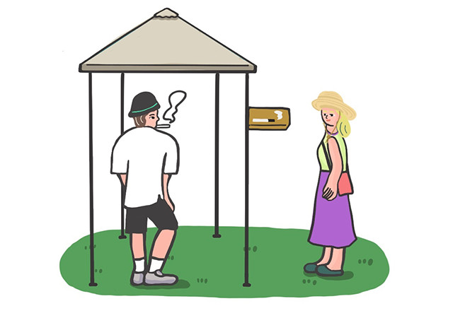 歩きタバコはもちろん、スタンディングゾーン等の混み合った場所での喫煙は絶対にやめましょう。喫煙は所定の喫煙エリアか自分のテントサイト区画で。ただし、自分のテントサイト区画での喫煙の際もご近所への配慮はお忘れなく!