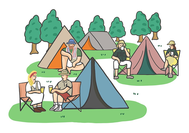 テントサイトはいわば街。深夜に大声で騒いだり他人の区画に勝手に上がりこんだりしてご近所に迷惑をかけず、各々に定められた区画を守って楽しみましょう。風で火が拡がり火災が発生するケースもありますので、火の扱いには十分注意しましょう。